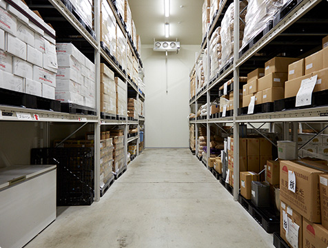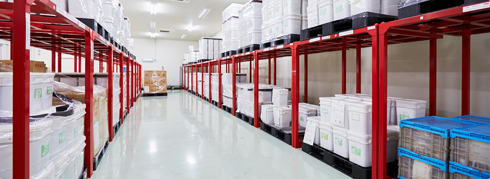 温度・湿度管理された原料倉庫を3室完備。