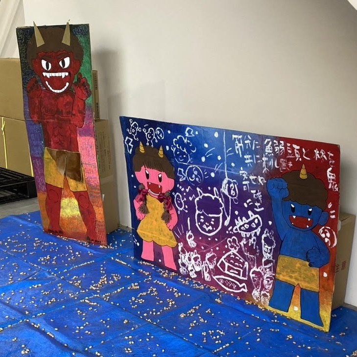 会場を彩った鬼のパネルは、株式会社PLAST様の就労継続支援B型事業所の皆さまと、0〜2歳の保育園の皆さまによる共同作品です。